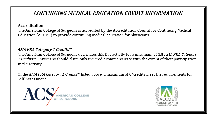 Successful completion of this CME activity, which includes participation in the evaluation component, enables the learner to earn credit toward the CME of the American Board of Surgery’s Continuous Certification program.